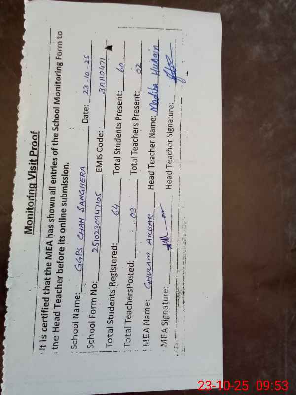 | EMIS Code: 38110471 | Name of School: GGPS CHAH SANGHERRA | |||
