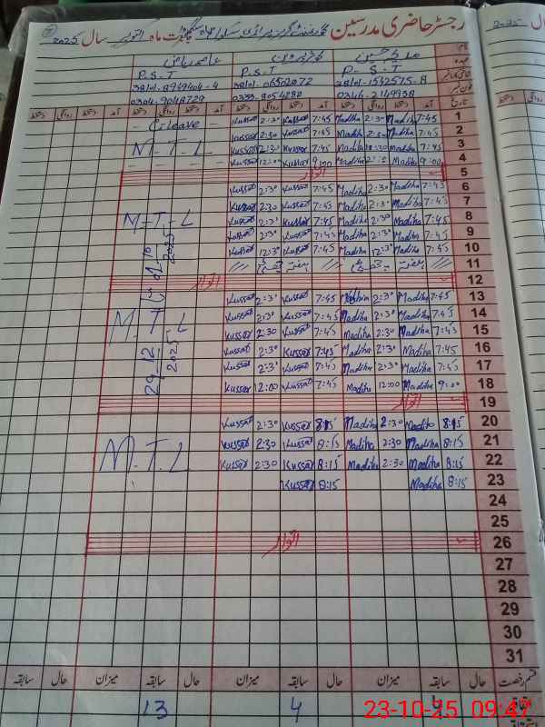 | Remarks (Use Separate Page if Required): Teacher Asma Riaz PST is absent without leave no approved leave available | |||||