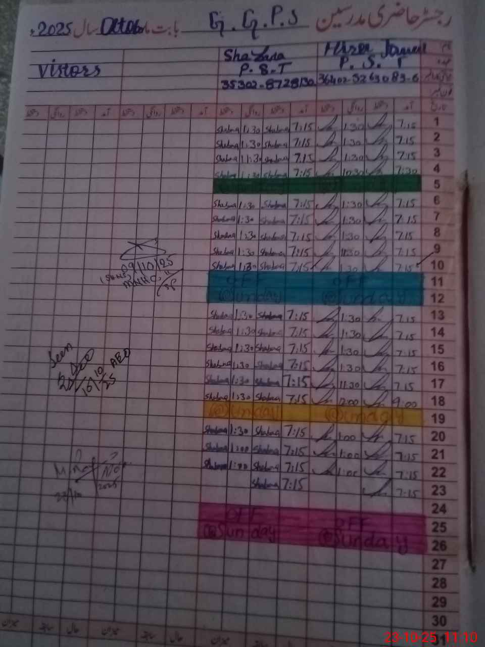 | CNIC | Full Name | Designation | R/C | Absence During Last Calender Month |