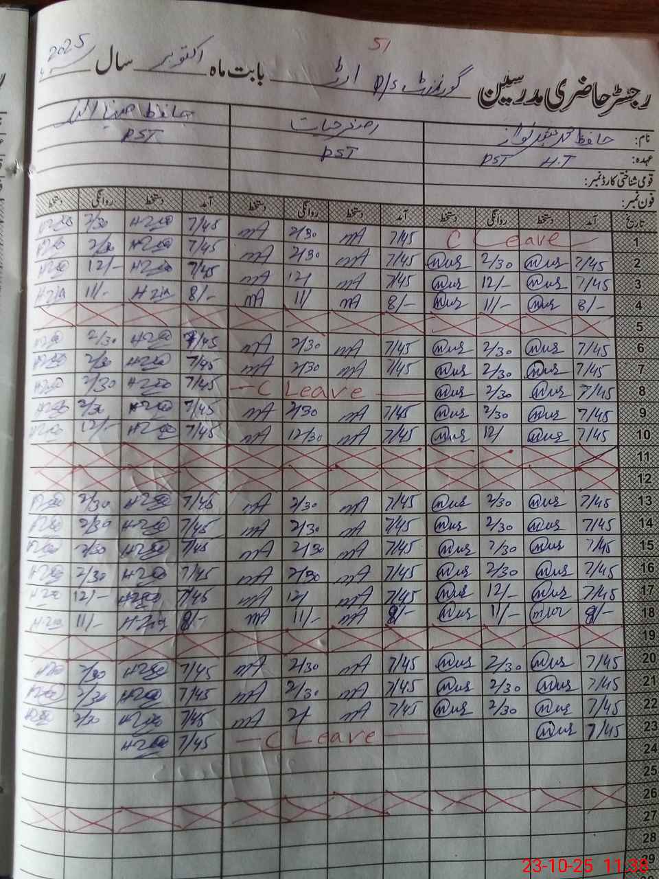 | Name: MU**** MU**** NA**** Designation: (School Headmaster's/Headmistress's) PST Phone/Cell Number: 03**** |