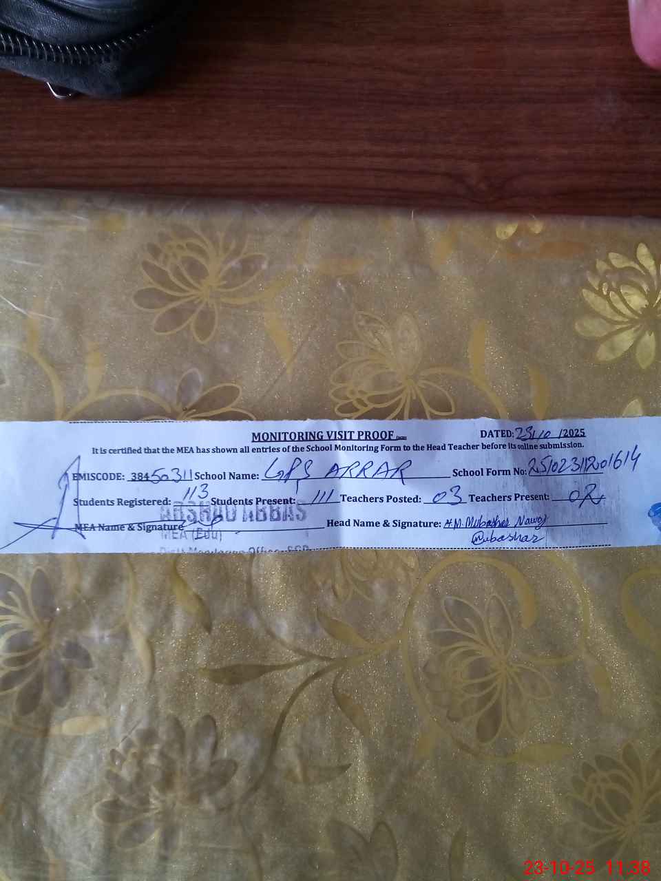 | EMIS Code: 38450311 | Name of School: GPS ARRAR | |||