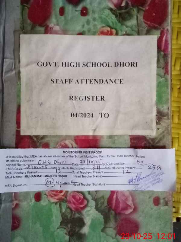 | EMIS Code: 38410035 | Name of School: GHS DHORI | |||
