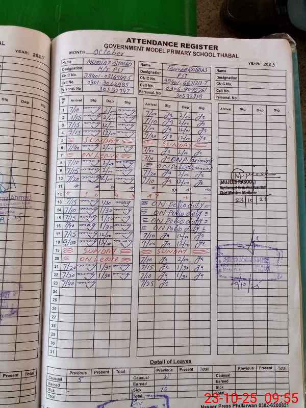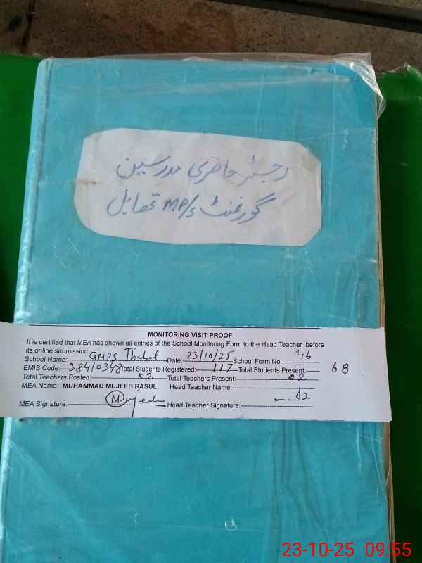 | EMIS Code: 38410348 | Name of School: GMPS CHAK NO.1 SB THABAL | |||