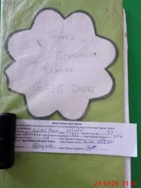 | EMIS Code: 38410670 | Name of School: GGHS DHORI | |||