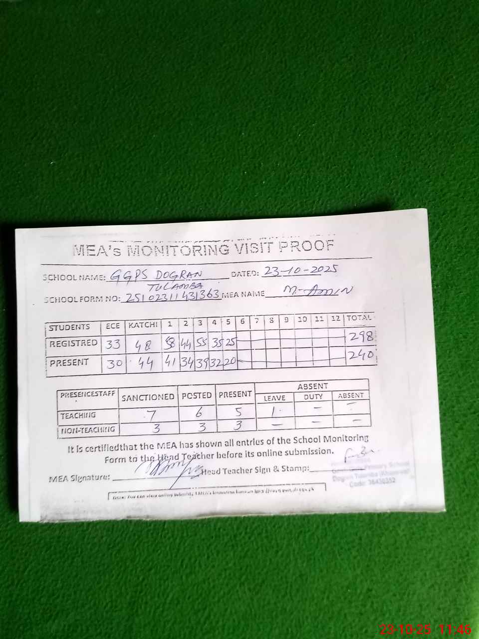| EMIS Code: 36430352 | Name of School: GGPS DOGRAN, TULAMBA | |||