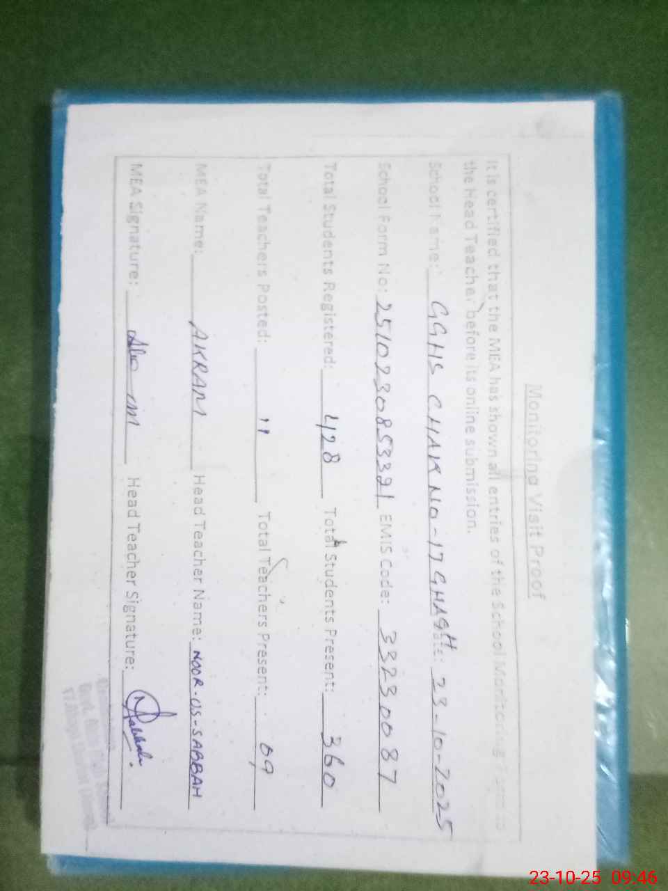 | EMIS Code: 33230087 | Name of School: GGHS CHAK NO 17 GHAGH | |||