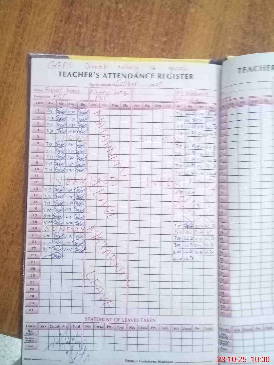| Name: Fa**** No**** Wa**** Designation: (School Headmaster's/Headmistress's) PST Phone/Cell Number: 03**** |