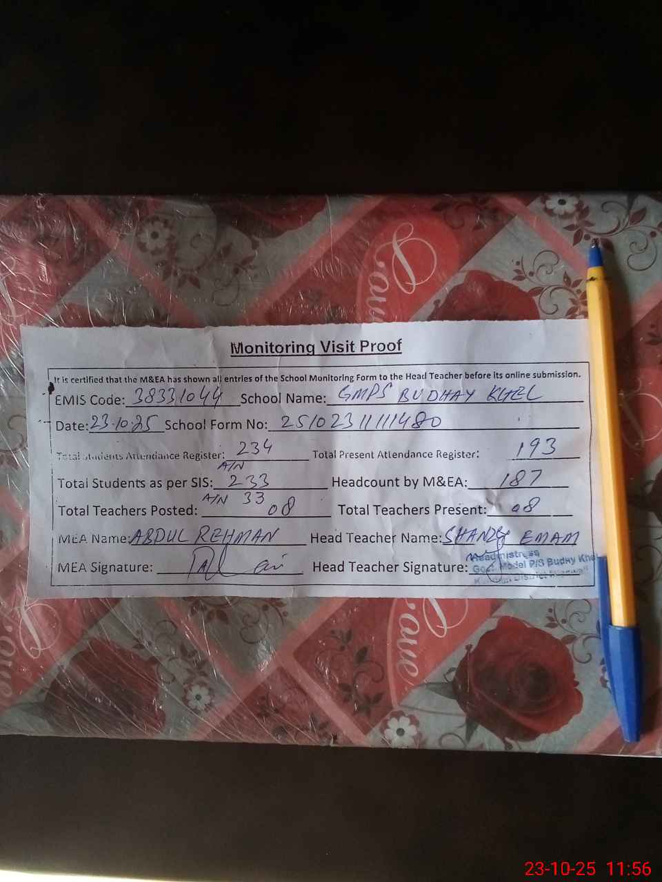 | EMIS Code: 38331044 | Name of School: GMPS BUDHAY KEHL | |||
