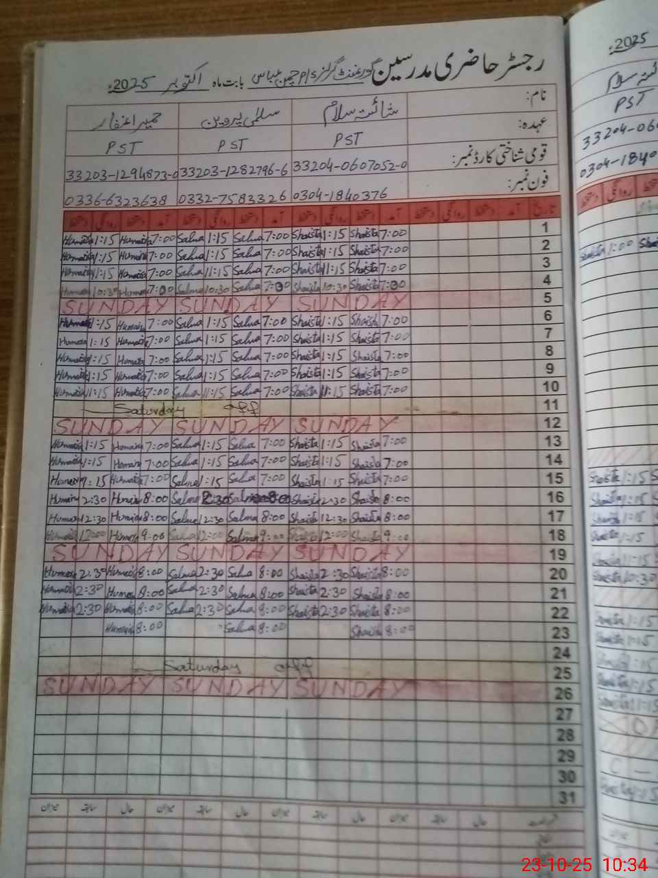 | Name: Sh**** Sa**** Designation: (School Headmaster's/Headmistress's) PST Phone/Cell Number: 03**** |