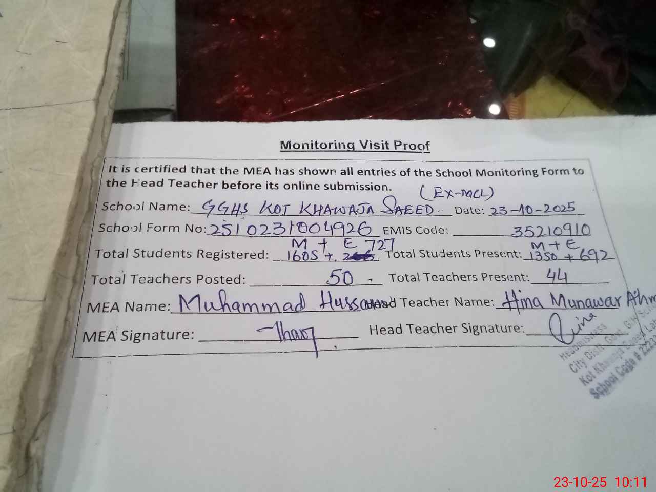 | EMIS Code: 35210910 | Name of School: GGHS KOT KHAWAJA SAEED (EX-MCL) | |||