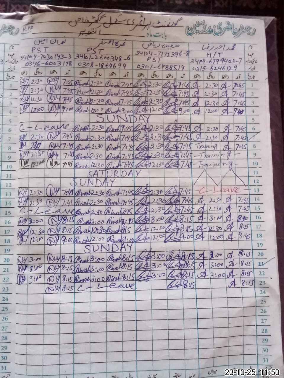 | CNIC | Full Name | Designation | R/C | Absence During Last Calender Month |