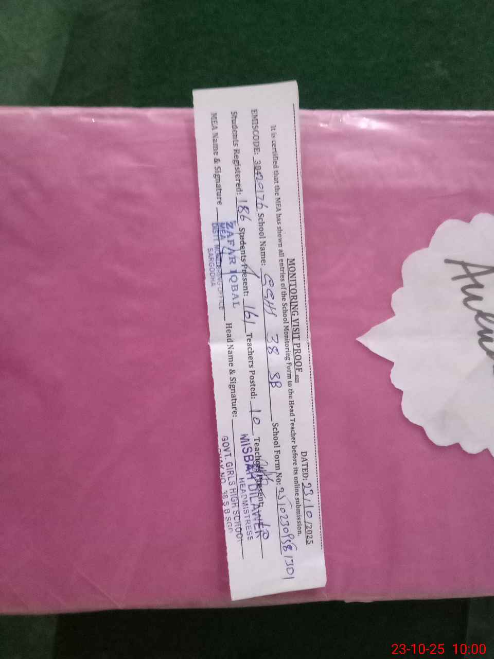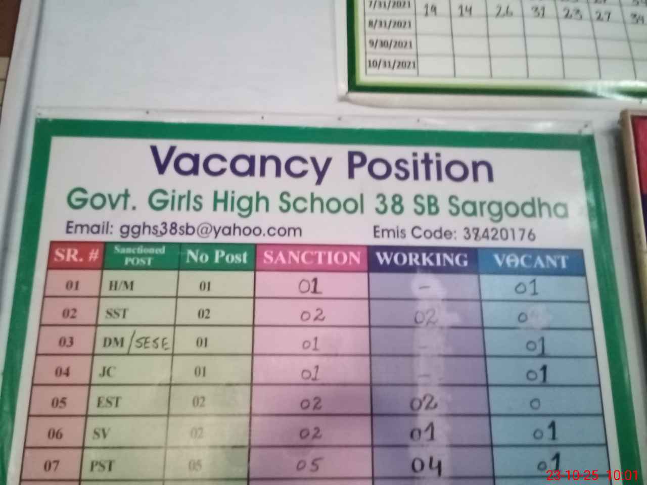 | EMIS Code: 38420176 | Name of School: GGHS CHAK NO.38 SB | |||