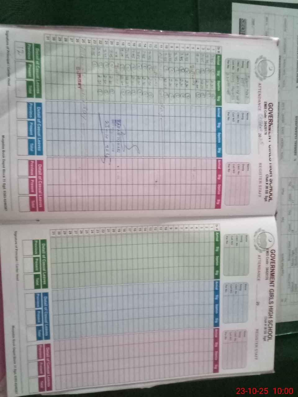 | CNIC | Full Name | Designation | R/C | Absence During Last Calender Month |