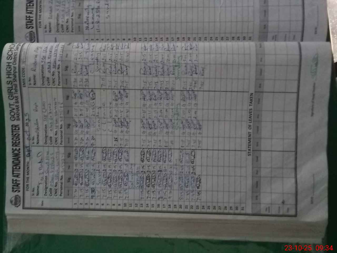 | CNIC | Full Name | Designation | R/C | Absence During Last Calender Month |