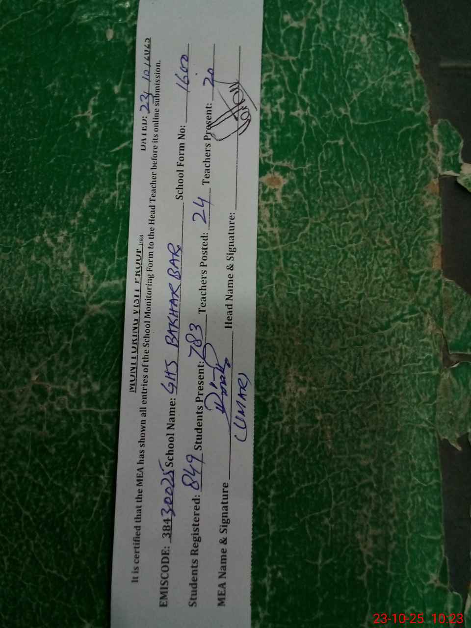 | EMIS Code: 38430025 | Name of School: GHS BHAKHAR BAR | |||