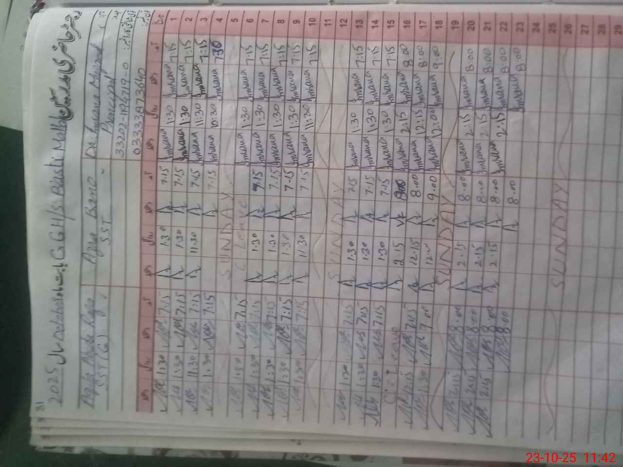 | Name: IM**** MU**** Designation: (School Headmaster's/Headmistress's) PRINCIPAL Phone/Cell Number: 03**** |