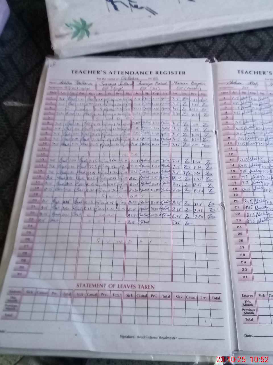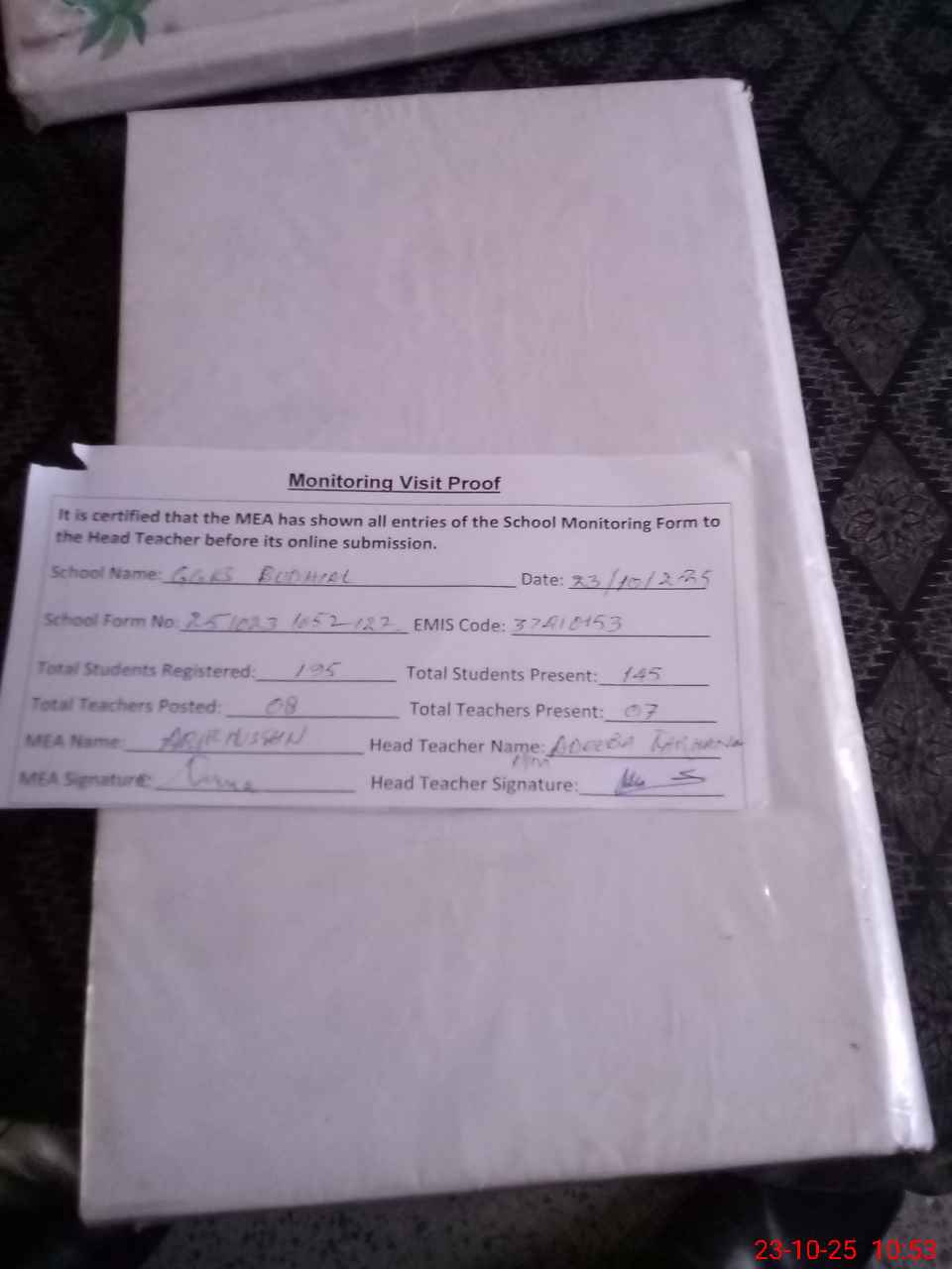 | Attendance Register | Head Teacher | MEA with School | Visit Proof |