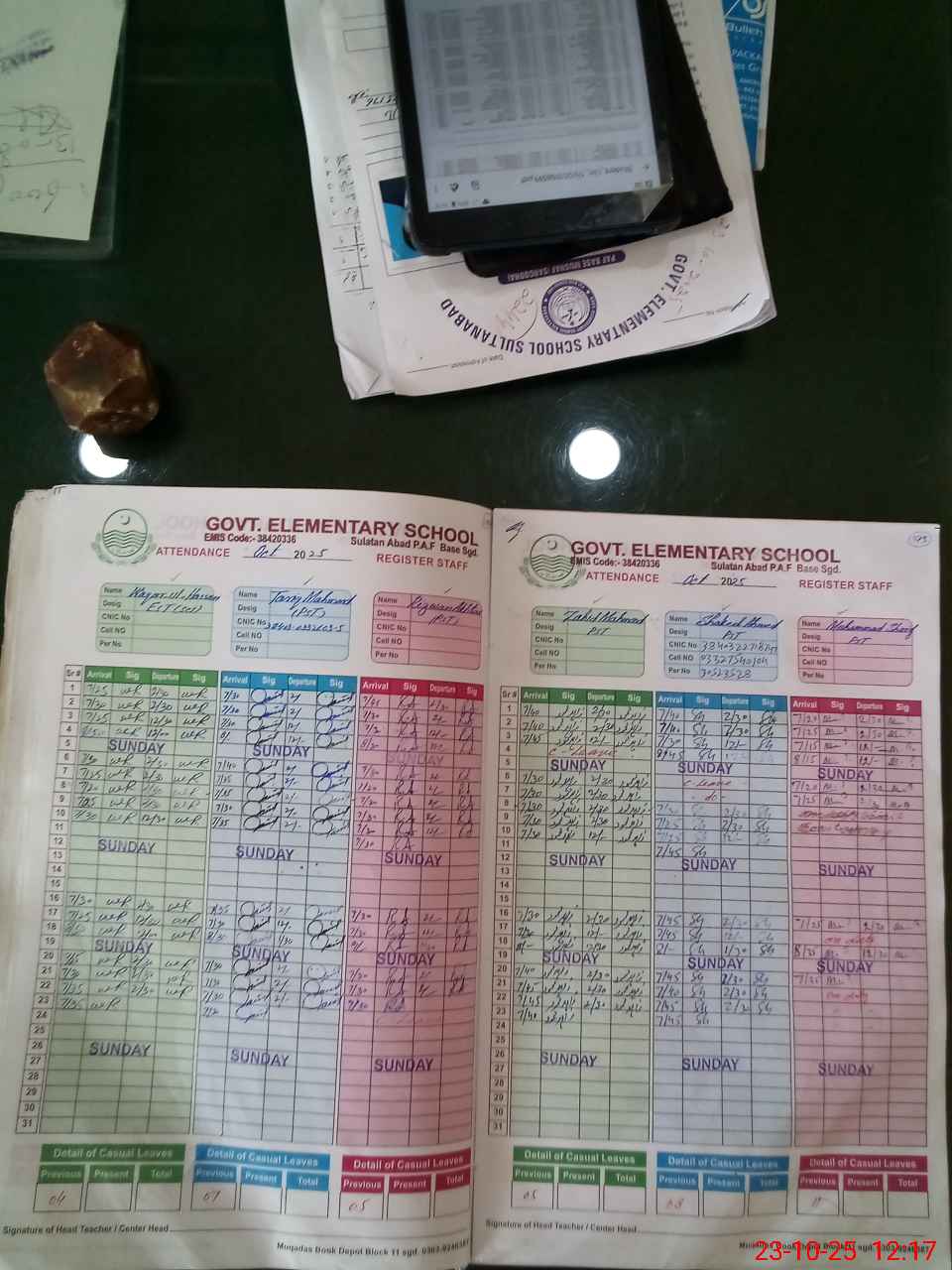 | CNIC | Full Name | Designation | R/C | Absence during last cal. month |