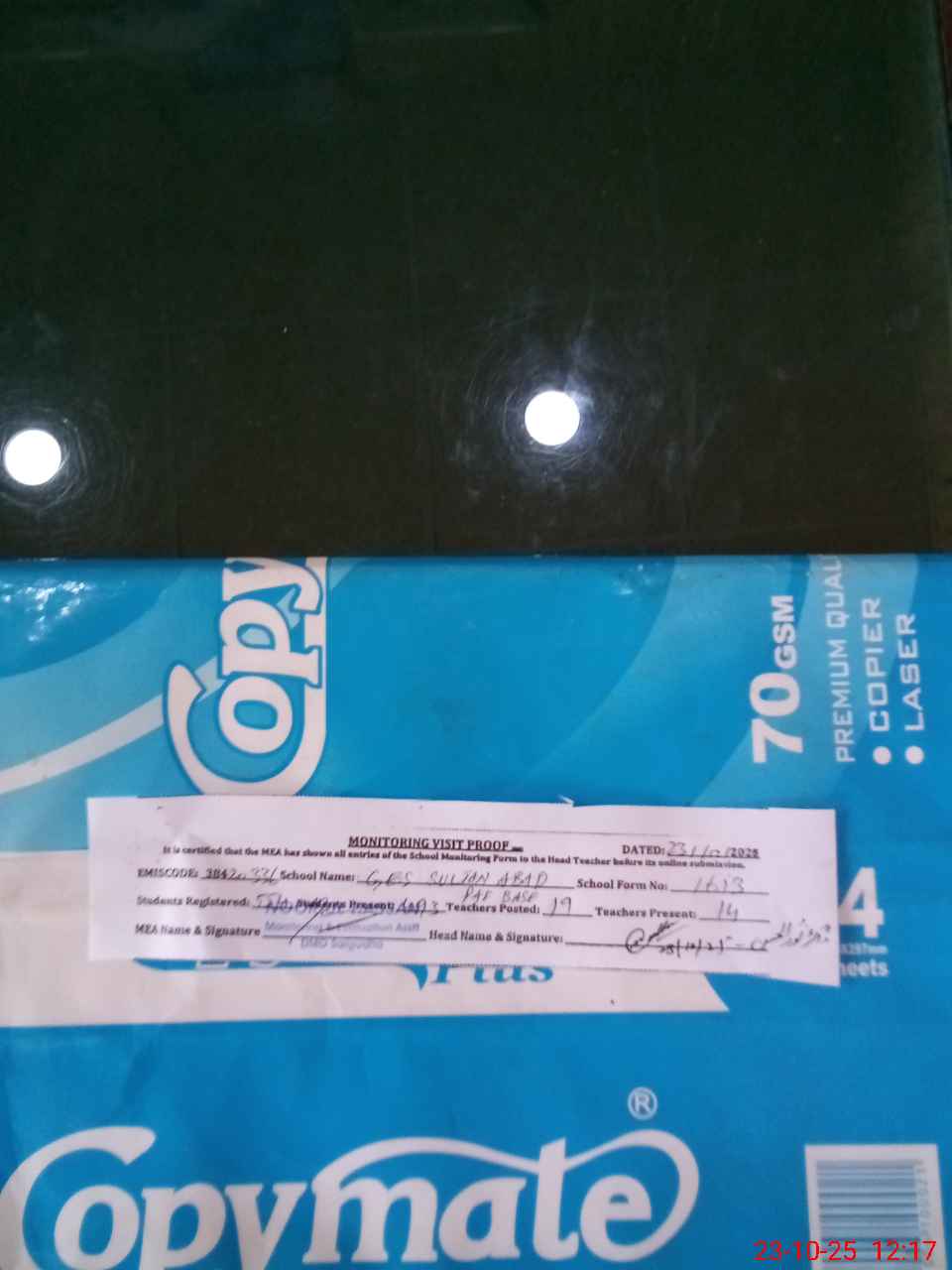 | Attendance Register | Head Teacher | MEA with School | Visit Proof |