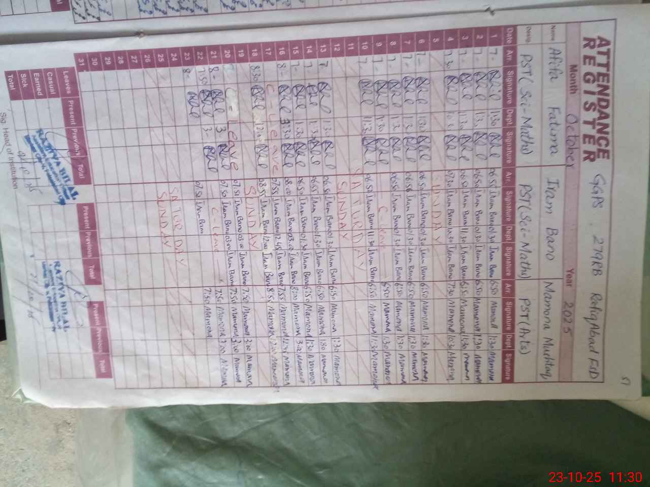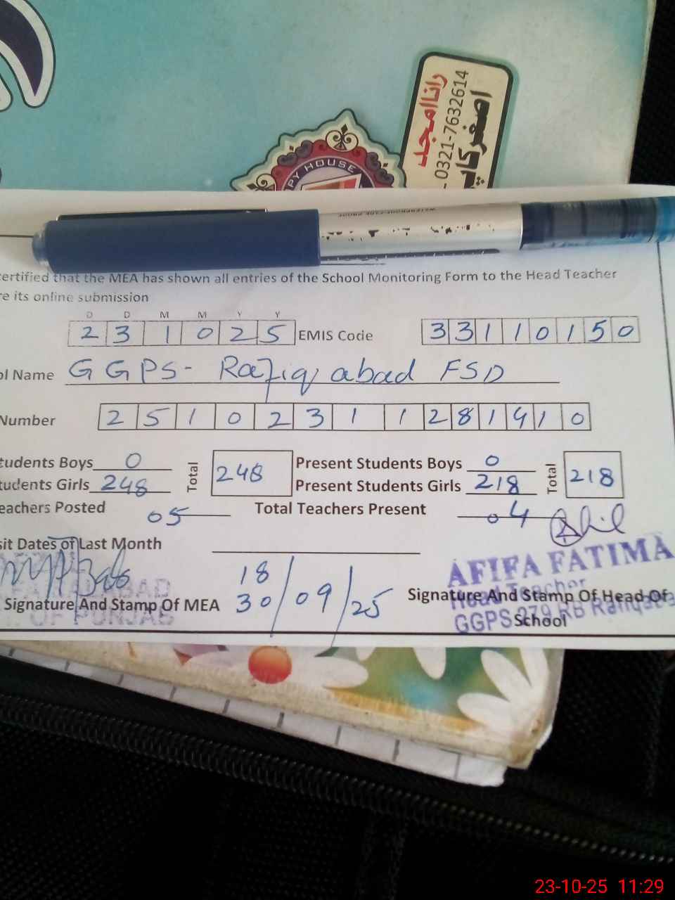 | Name: Af**** Fa**** Designation: (School Headmaster's/Headmistress's) PST Phone/Cell Number: 03**** |