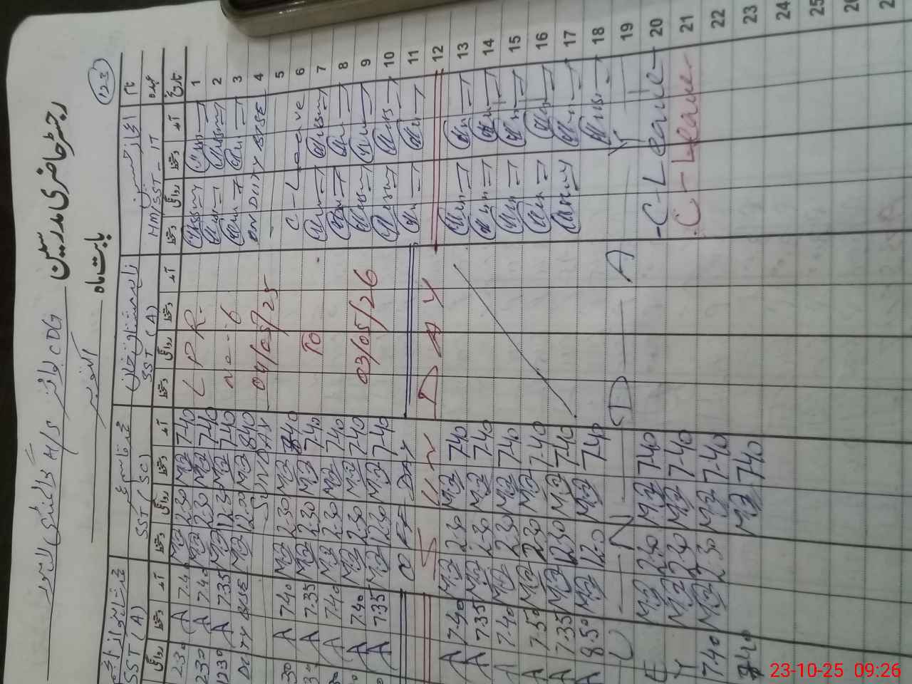 | CNIC | Full Name | Designation | R/C | Absence During Last Calender Month |