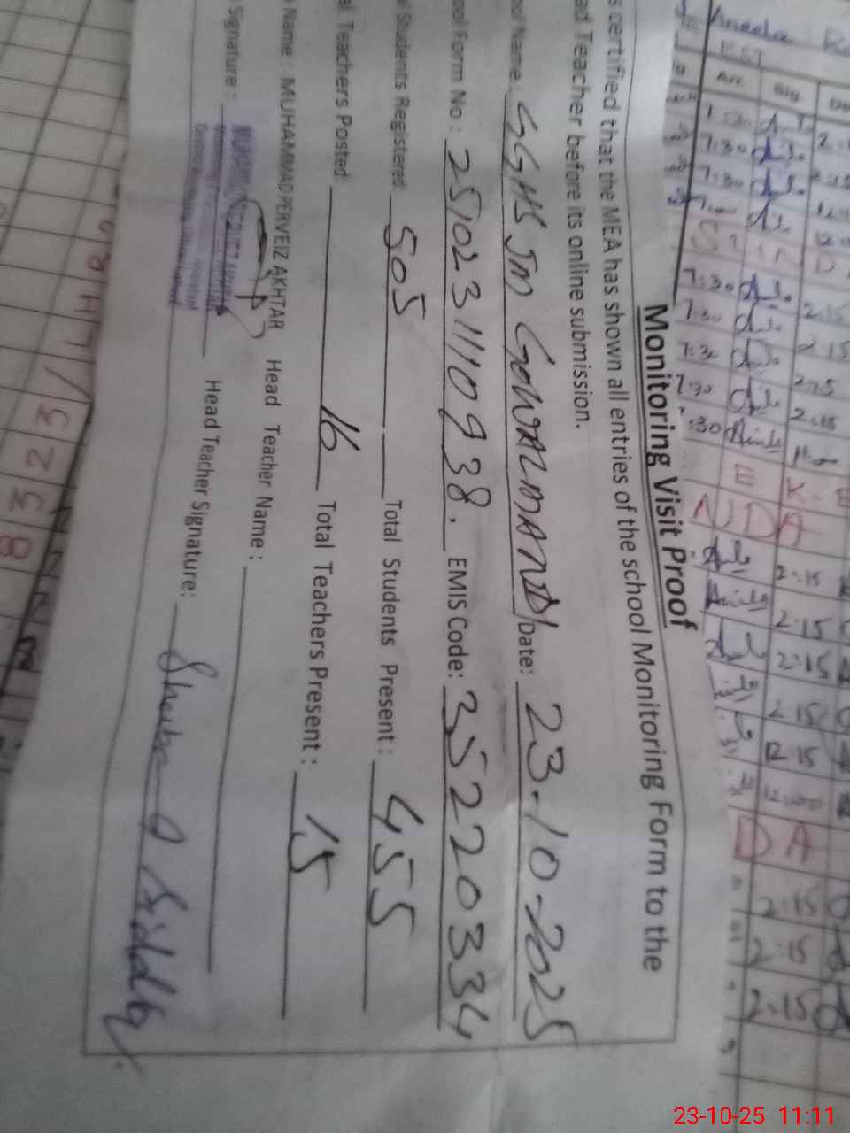 | EMIS Code: 35220334 | Name of School: GGHS JUNIOR MODEL GOWALMANDI (Newly Upgraded) | |||