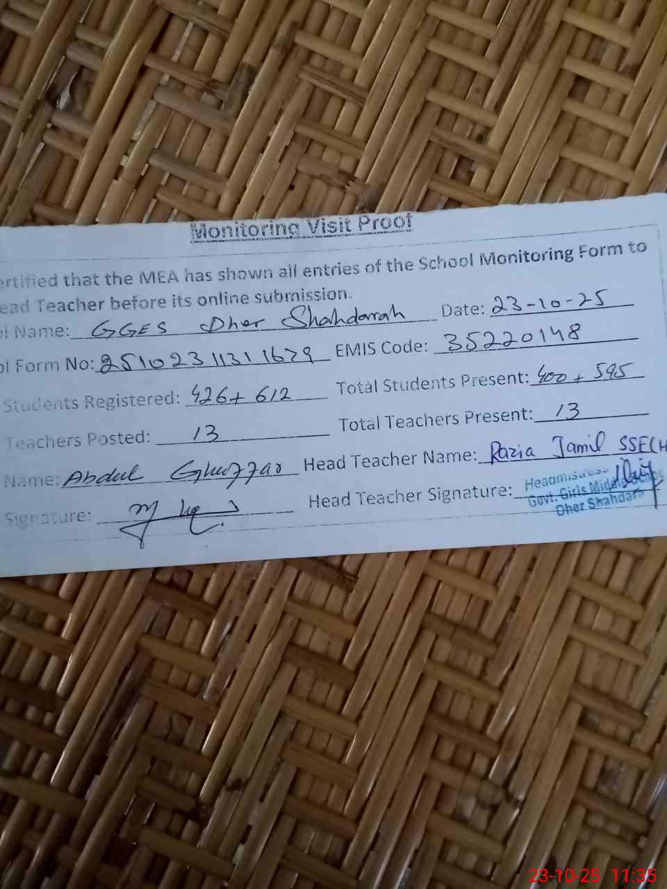| EMIS Code: 35220148 | Name of School: GGES DHER SHAHDARA | |||