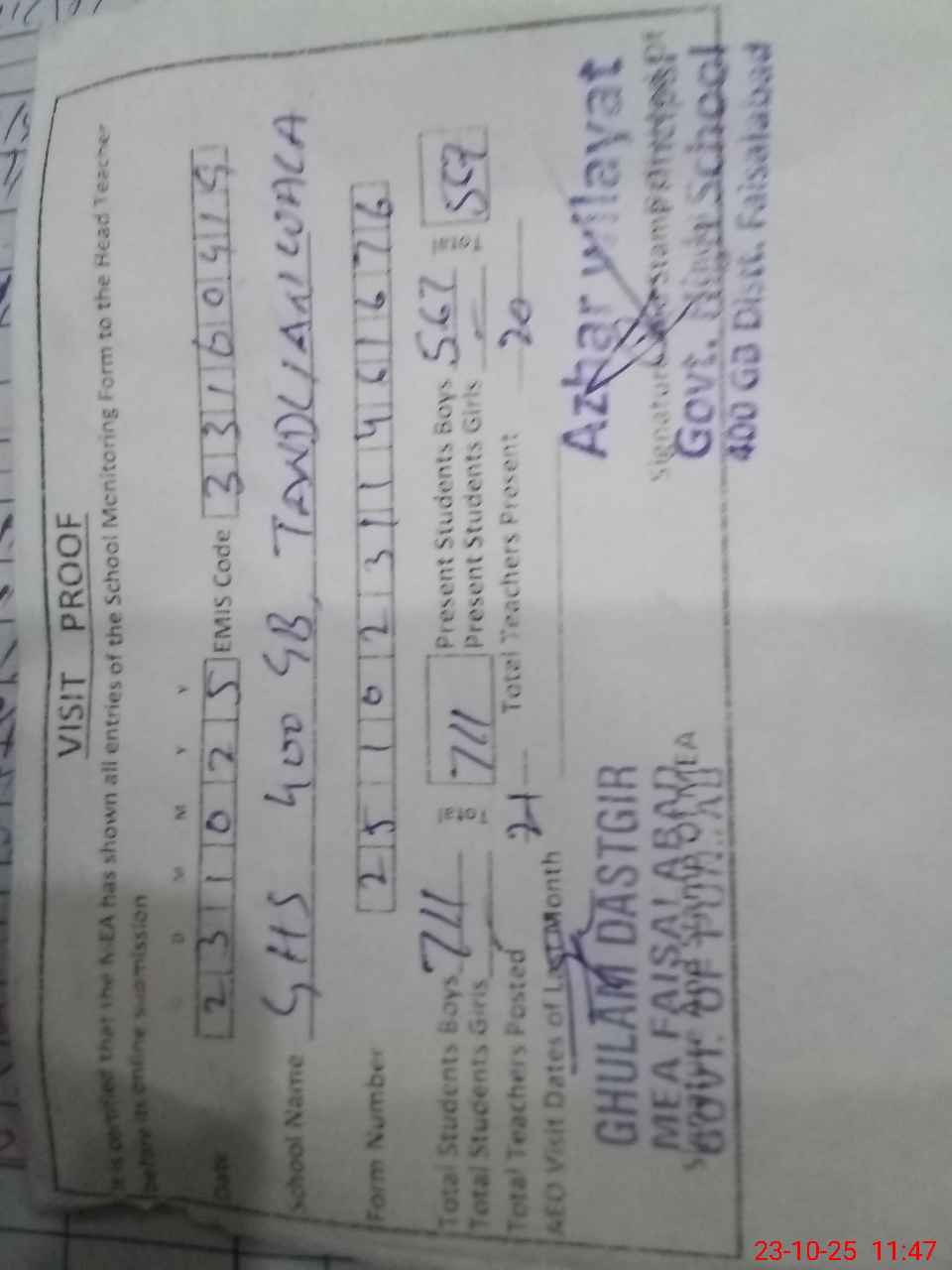 | EMIS Code: 33160419 | Name of School: GHS CHAK 400 GB TANDLIANWALA FSD | |||