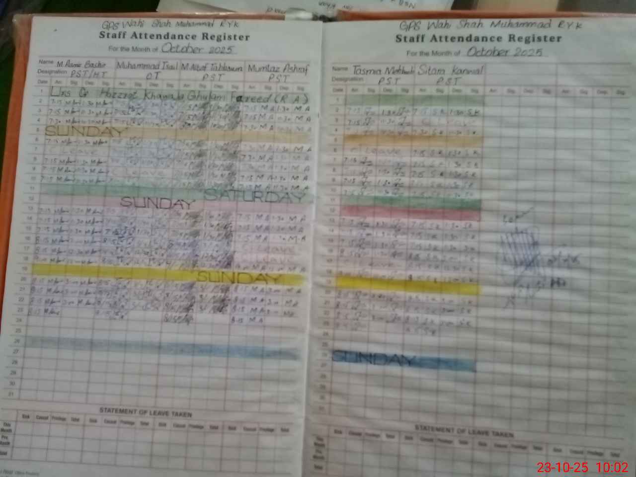 | CNIC | Full Name | Designation | R/C | Absence During Last Calender Month |