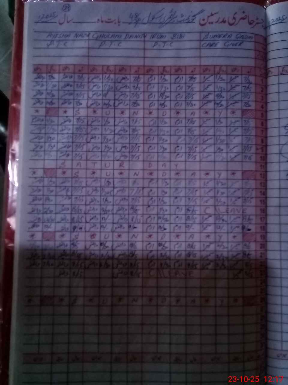 | CNIC | Full Name | Designation | R/C | Absence During Last Calender Month |