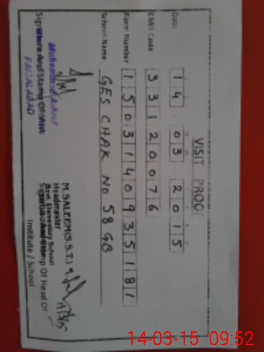 | EMIS Code: 33120076 | Name of School: GES CHAK 58 GB | |||