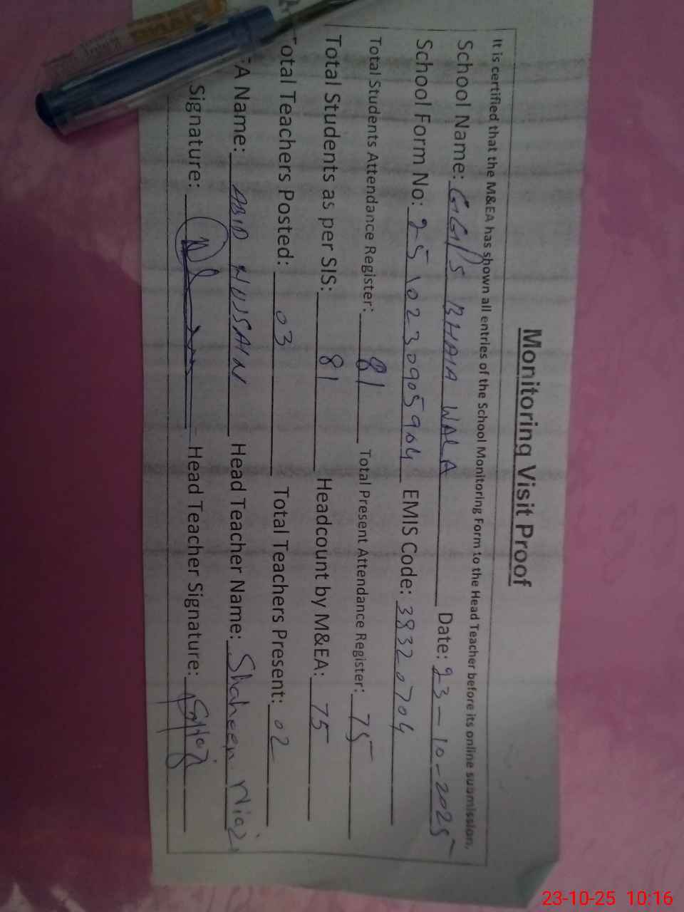 | EMIS Code: 38320704 | Name of School: GGPS BHAIAN WALA | |||