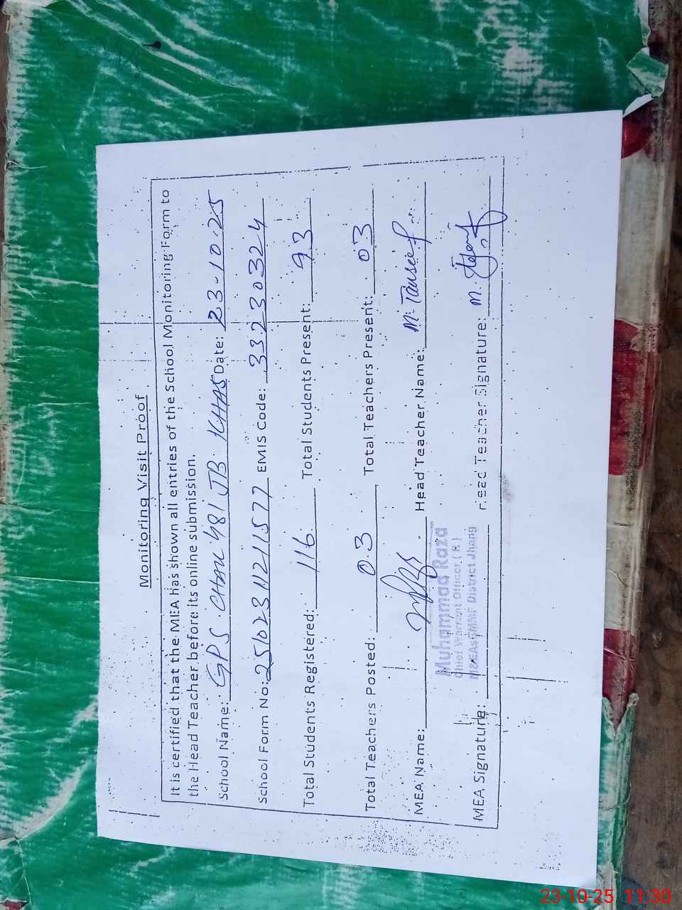 | EMIS Code: 33230324 | Name of School: GPS CHAK NO 481 KHAS | |||