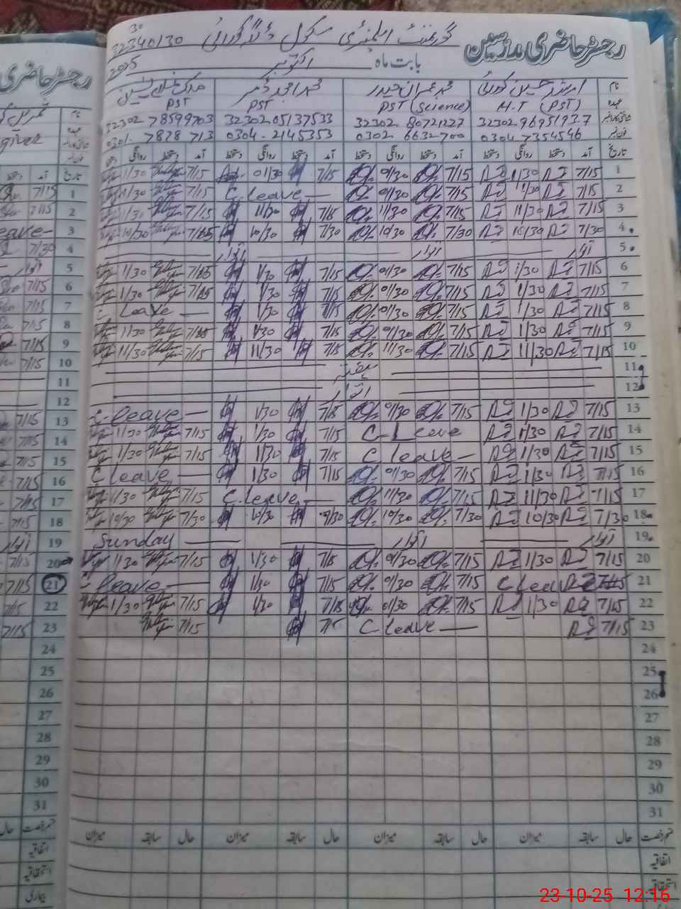| Name: Ar**** Hu**** Designation: (School Headmaster's/Headmistress's) PST Phone/Cell Number: 03**** |