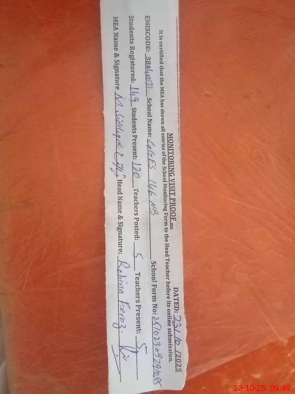 | Certified that this School was Inspected by the Undersigned MEA/DMO Today and the Information Stated Above is as Per Record. | |||||