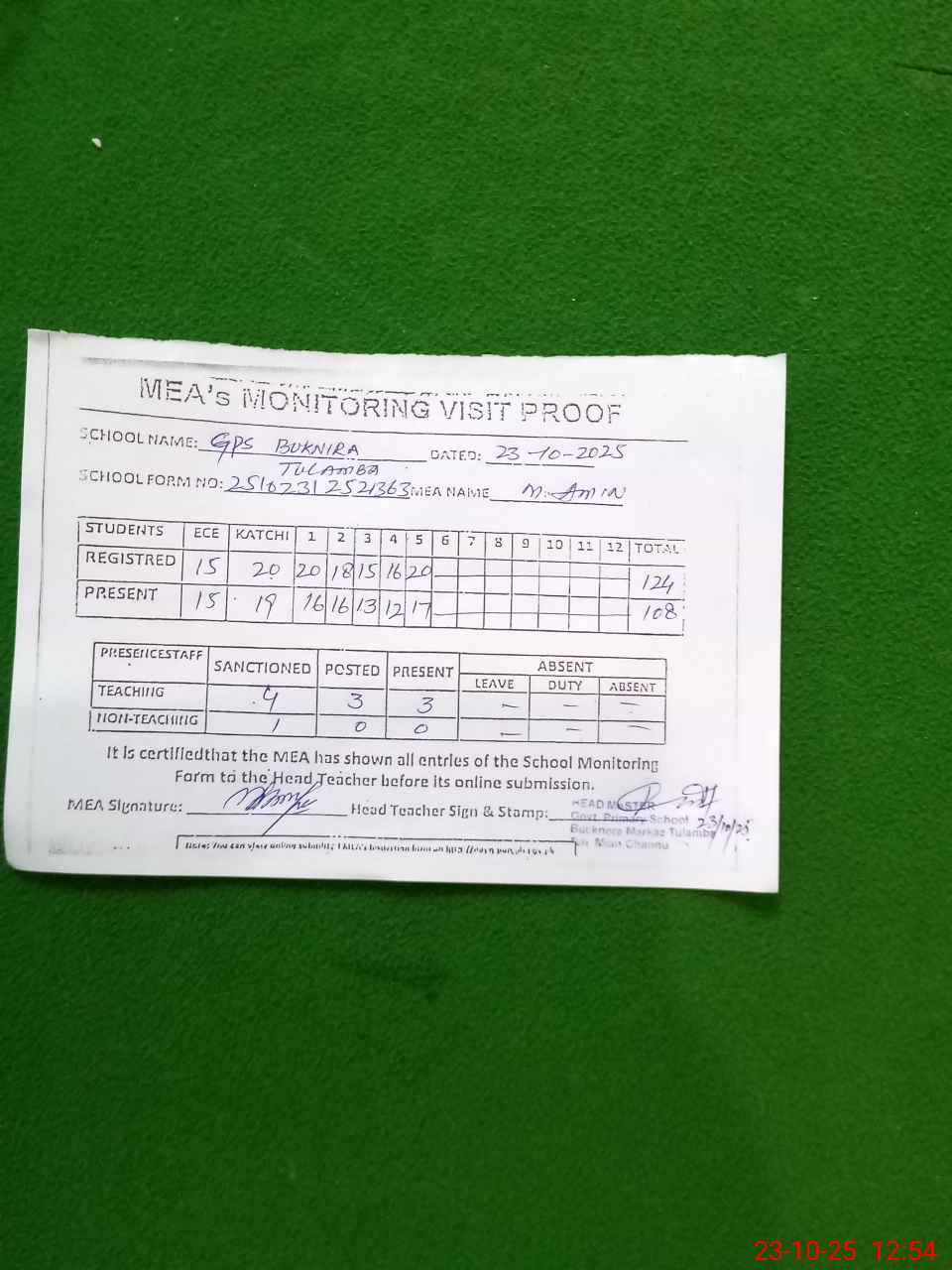 | EMIS Code: 36430263 | Name of School: GPS BUKNIRA, TULAMBA | |||