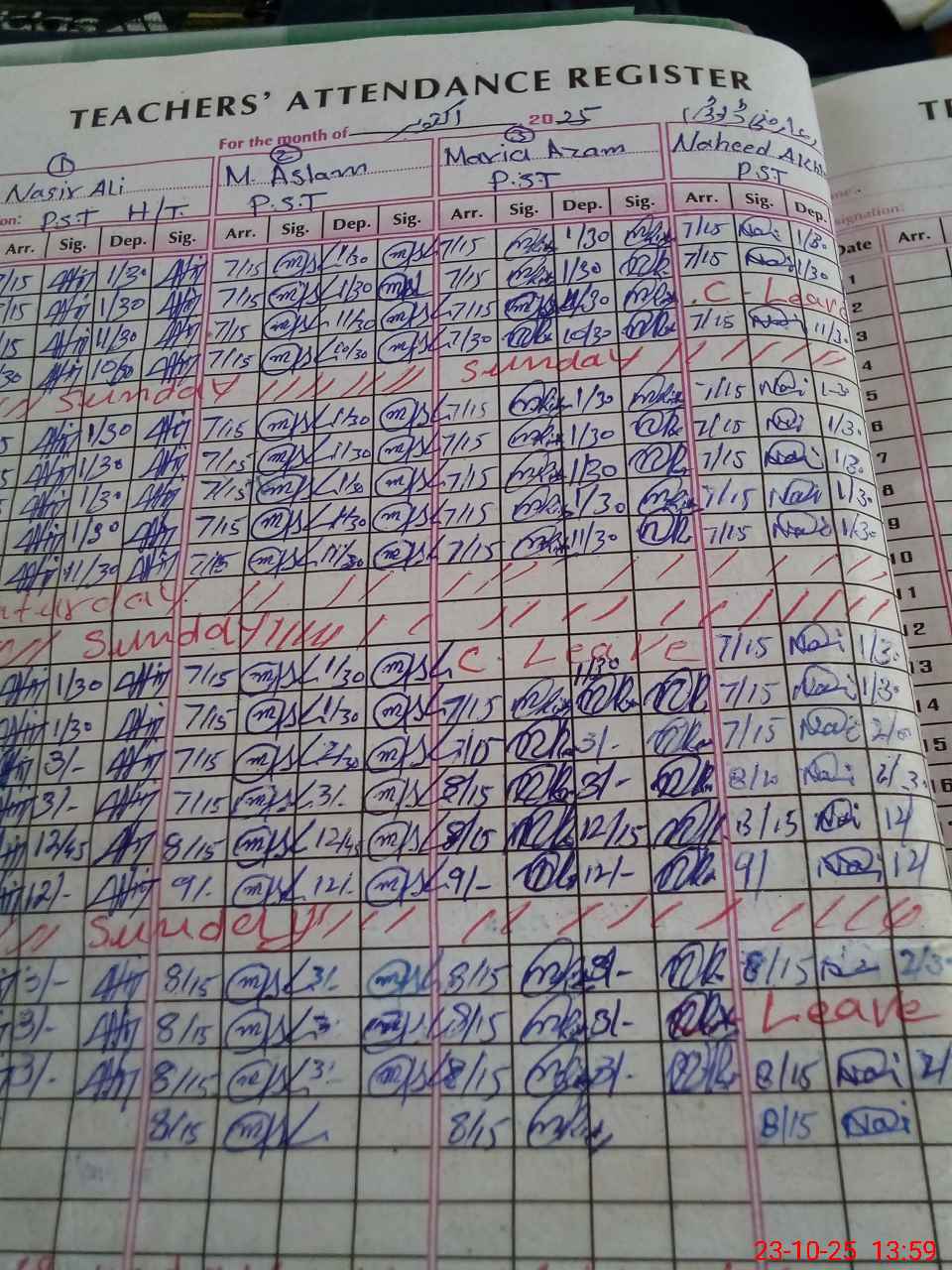 | Name: NA**** AL**** Designation: (School Headmaster's/Headmistress's) PST Phone/Cell Number: 03**** |