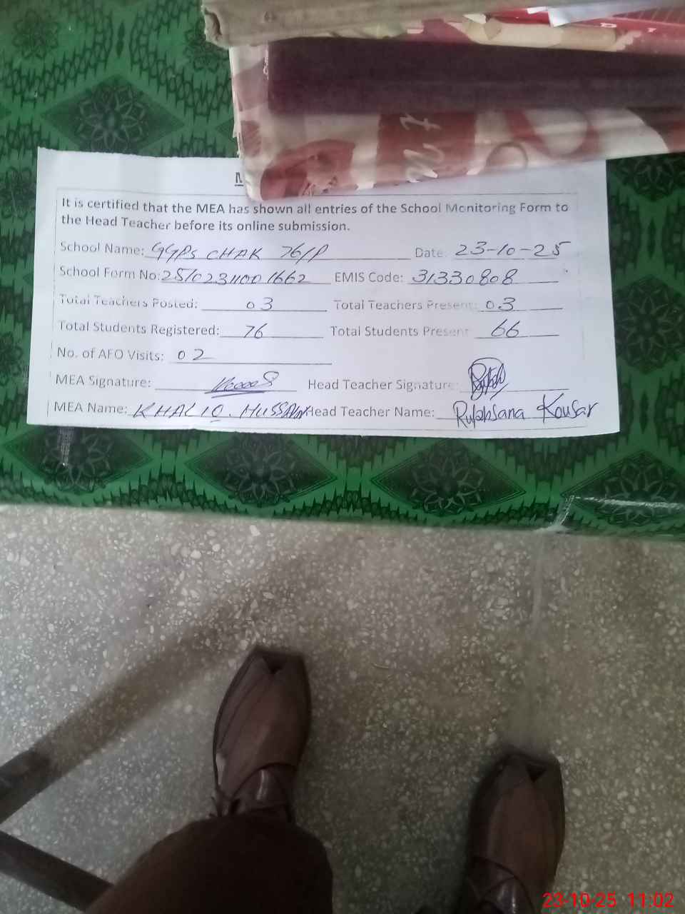 | EMIS Code: 31330808 | Name of School: GGPS CHAK 76/P | |||