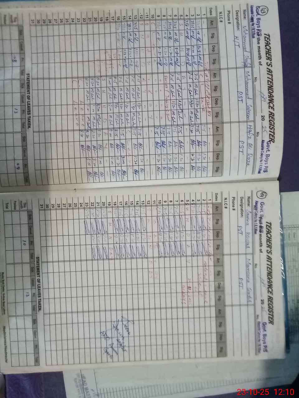 | Name: Mo**** SH**** Designation: (School Headmaster's/Headmistress's) PST/PTC/JV Phone/Cell Number: 03**** |