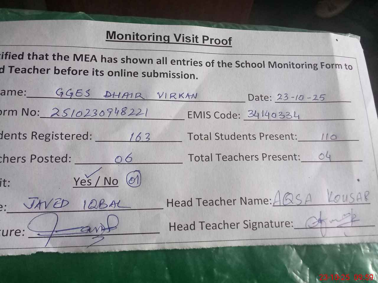 | EMIS Code: 34140334 | Name of School: GGES DHEER VIRKAN | |||
