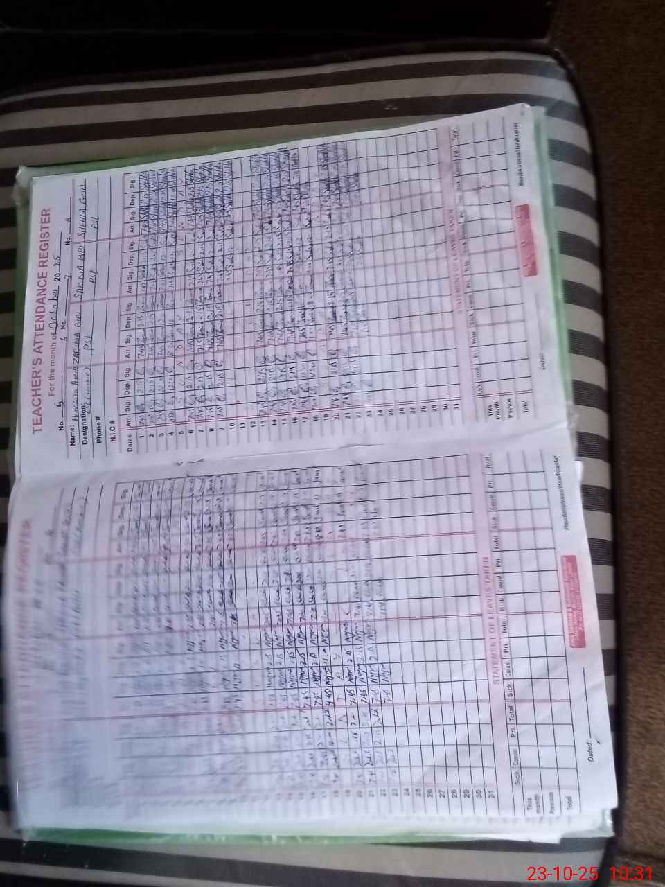 | Name: ZA**** BA**** Designation: (School Headmaster's/Headmistress's) S.S.T.(Arts) Phone/Cell Number: 03**** |