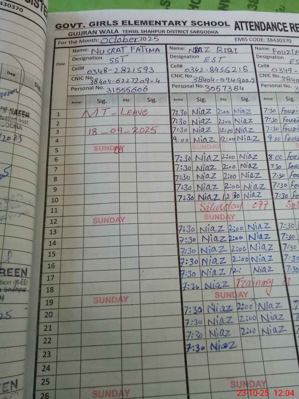 | Name: NU**** FA**** Designation: (School Headmaster's/Headmistress's) SST (SCIENCE) Phone/Cell Number: 03**** |