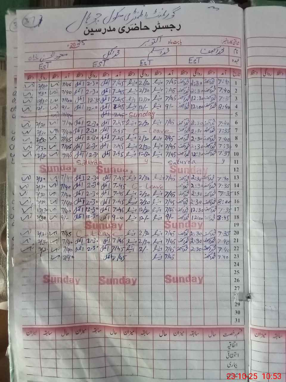 | CNIC | Full Name | Designation | R/C | Absence During Last Calender Month |