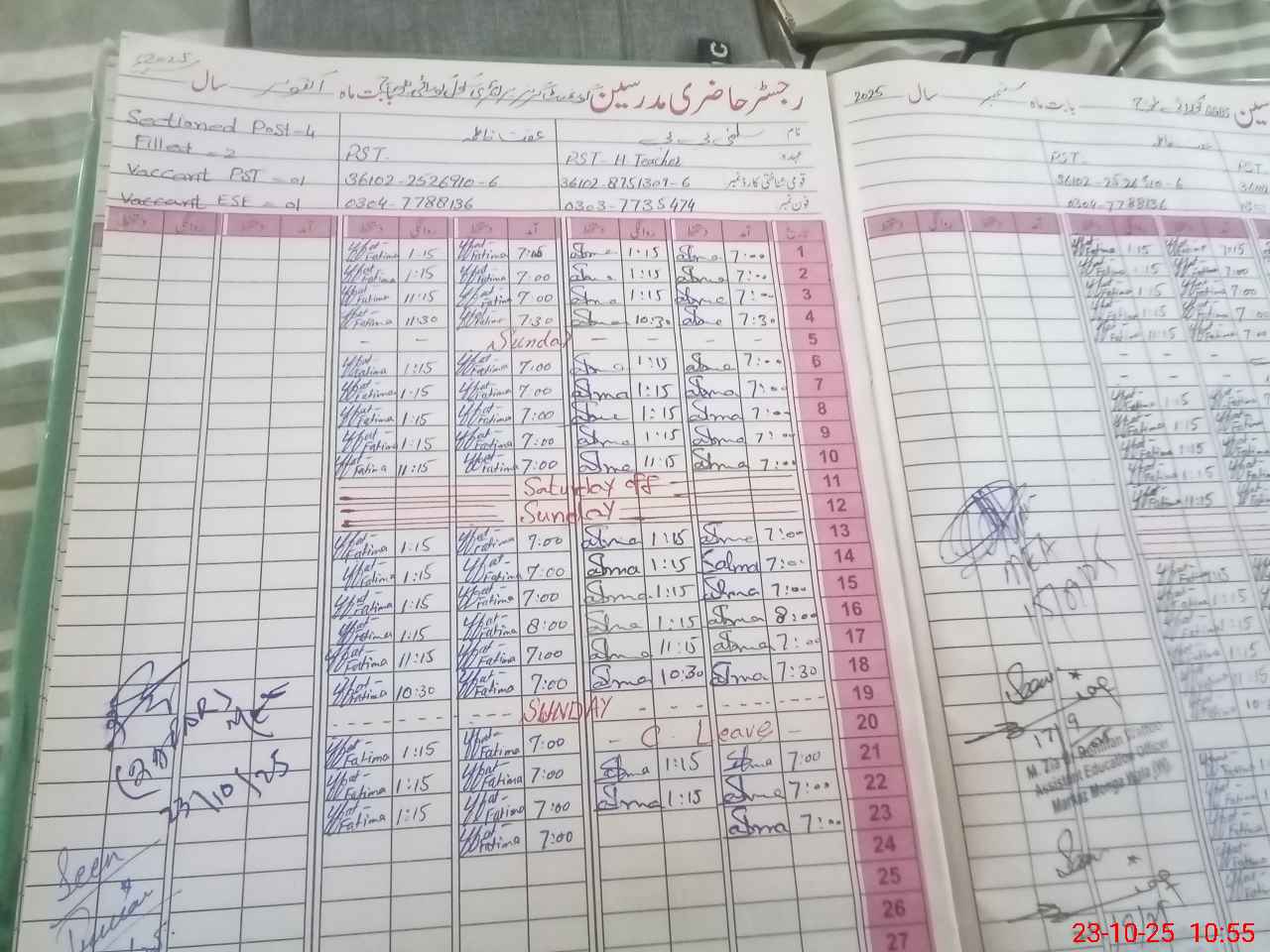 | CNIC | Full Name | Designation | R/C | Absence During Last Calender Month |