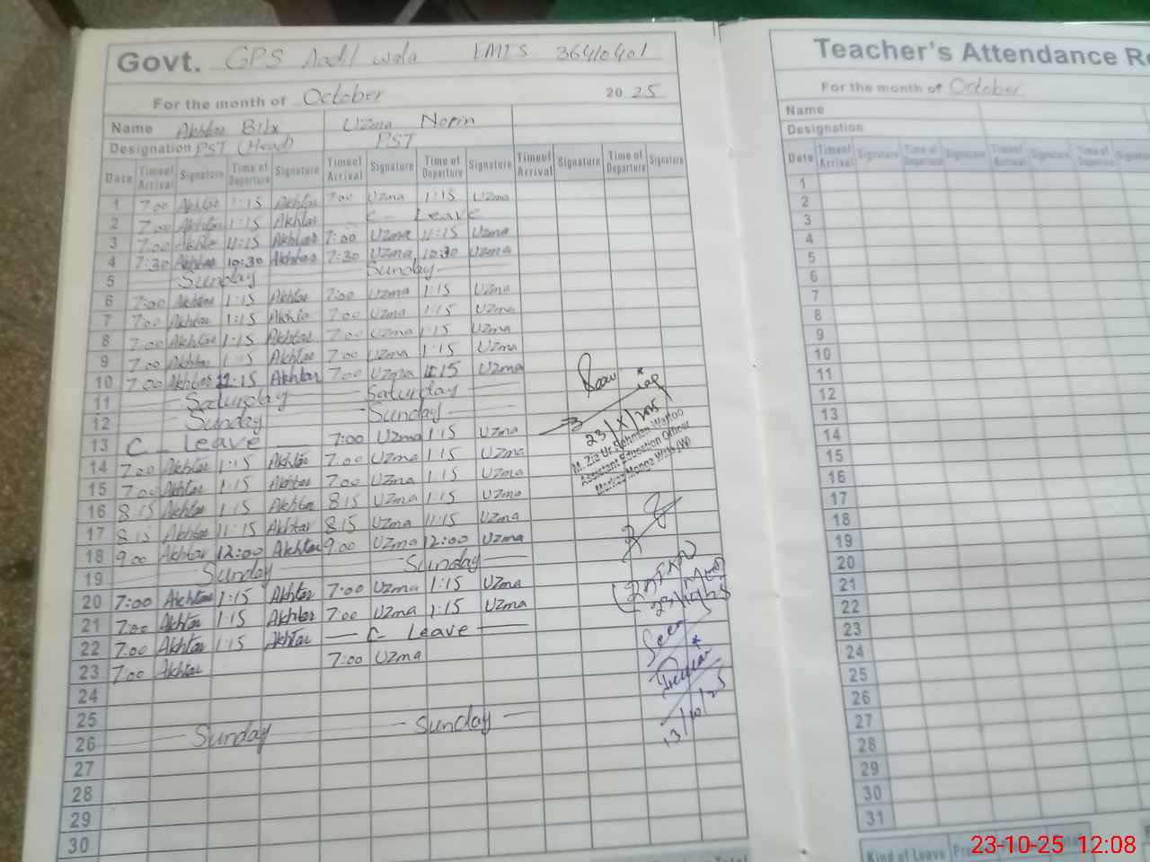 | Name: Ak**** Bi**** Designation: (School Headmaster's/Headmistress's) PST Phone/Cell Number: 03**** |