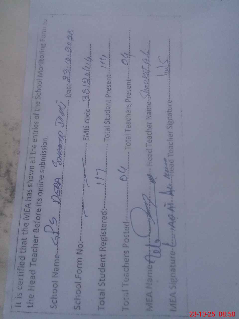 | EMIS Code: 38120414 | Name of School: GPS DERA SHAMIR JHUNJ | |||