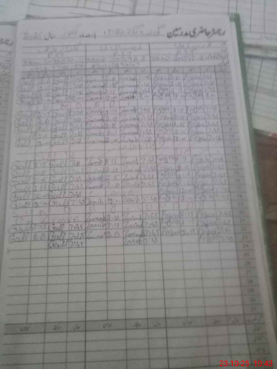 | CNIC | Full Name | Designation | R/C | Absence During Last Calender Month |
