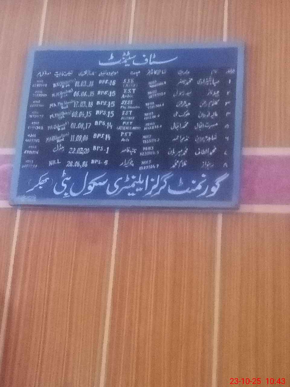 | District: BHAKKAR | Tehsil: KALLUR KOT | Markaz: CHAK NO.65/DB-FEMALE | Level: Middle | |