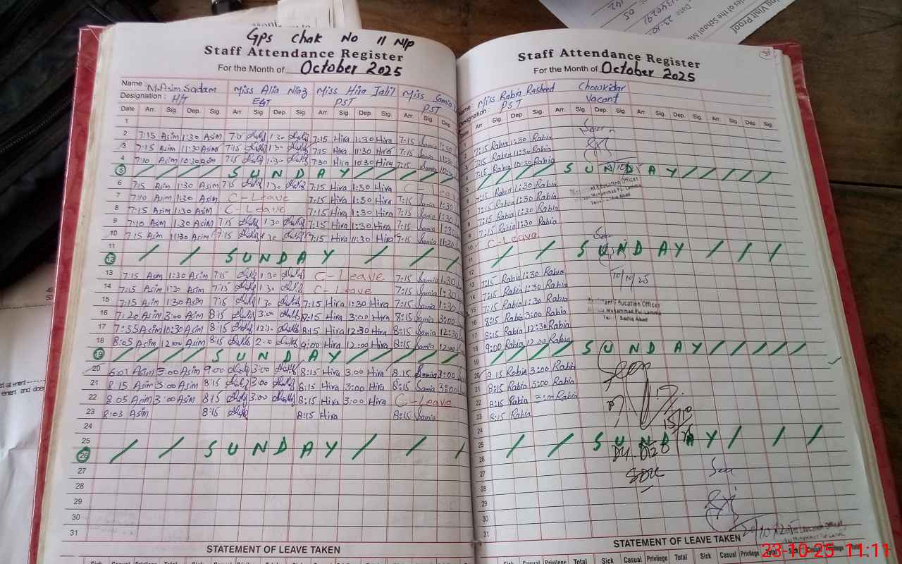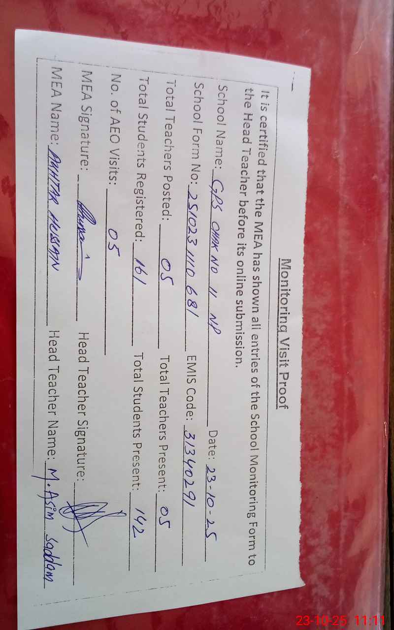 | EMIS Code: 31340291 | Name of School: GPS CHAK NO 11 NP | |||