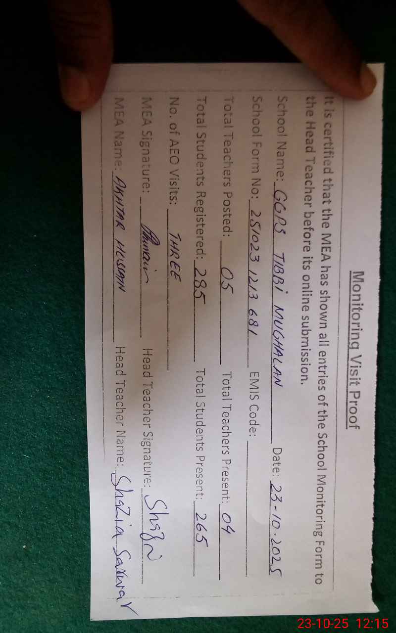 | EMIS Code: 31340524 | Name of School: GGPS TIBBI MUGHALAN | |||